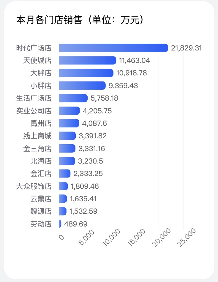 具体到当月各门店业绩,截至目前,胖东来时代广场店依然遥遥领先,本月销售额约2.18亿元,随后天使城店、大胖店、小胖店销售额分别为约1.14亿元、1.09亿元、9359万元。